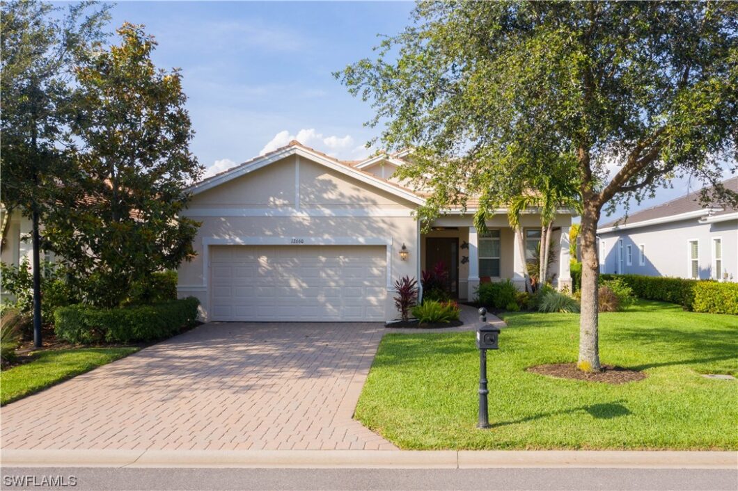 WOW “TURNKEY”. This home is as clean as a whistle and shows like a model, and IS BEING OFFERED TURNKEY! It has 3 good sized bedrooms, 2.5 bathrooms, an attached 2 car garage and a HEATED SWIMMING POOL WITH A VIEW OF A FRESH WATER LAKE. Featuring an OPEN FLOOR PLAN; the kitchen has stainless steel appliances, beautiful GRANITE COUNTER TOPS, LG Washer/Dryer, crown molding, TRAY CEILINGS and PLANTATION SHUTTERS. Verandah has amenities to serve everyone, offering TWO 18 HOLE CHAMPIONSHIP GOLF COURSES, Tennis, State of the Art Fitness Center, Community Pool, Pickleball, Bocce, doggy park, KAYAKING, playground, an active social calendar and multiple restaurants. Verandah is close to Downtown Ft Myers and both the Ft Myers & Punta Gorda Airports.