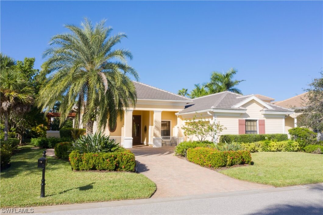 AS GOOD AS NEW: This executive home was custom built by Florida Lifestyles Homes, and is LOADED WITH UPGRADES. If boasts a NEW ROOF in 2023 and newer A/C units. There are 3 large EN SUIT bedrooms and a huge kitchen that will please most chefs. The open floor plan makes entertaining easy with seating at an open bar, an eat-in kitchen, and spectacular views of the pool and the 15th green of Whispering Oaks golf course. Crown molding, CUSTOM CEILINGS, plantation shutters and a CUSTOM DESIGNED ROTUNDA leading the the primary bedroom are just a few of the many upgrades that differentiates this custom home from a spec home. The lanai includes an outdoor kitchen, a gas fireplace (both natural gas), and large seating areas with a custom wood ceiling . Also included is a gas heated swimming pool, hot tub and ELECTRIC HURRICANE SHUTTERS for extra protection. At Verandah you can enjoy abundant amenities including tennis, pickleball, kayaking, miles of bike/walking trails. Verandah is close to Downtown Fort Myers, the Caloosachatchee River and both the Fort Myers and Punta Gorda airports.